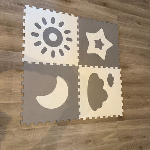 Dreambaby lekegrind sekskantet med madrass. Lekegrinden har svarte stålstenger og en sekskantet form som gir et avgrenset og trygt område for små barn. Den leveres med en polstret, sekskantet madrass i lys grå farge som dekker hele bunnen. En av seksjonene har døråpning med låsemekanisme for enkel inn- og utgang for voksne. Egner seg til innendørs bruk som lekeområde eller avgrensning for baby og småbarn.