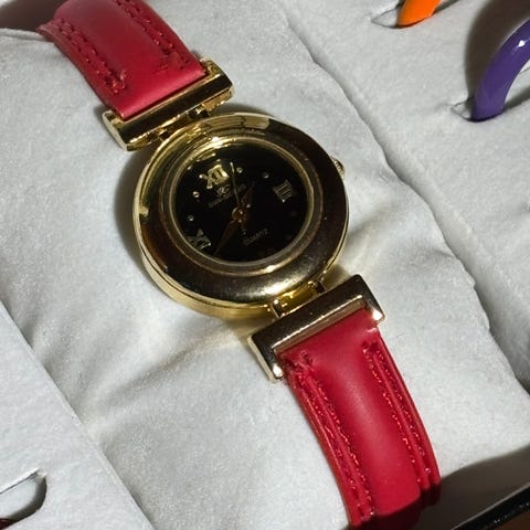 Giani Giorgio damesett armbåndsur med flere utskiftbare remmer og bezeler. Klokken har rundt urkasse i metall med mørk urskive. Settet inneholder flere lærremmer i ulike farger samt utskiftbare bezeler i forskjellige farger og utførelser, inkludert noen med stein- eller mønsterdetaljer. Leveres i original eske som holder klokken, remmene og bezelene organisert. Egnet som dameklokke med mulighet for variasjon i uttrykk ved å bytte rem og bezel etter ønske.