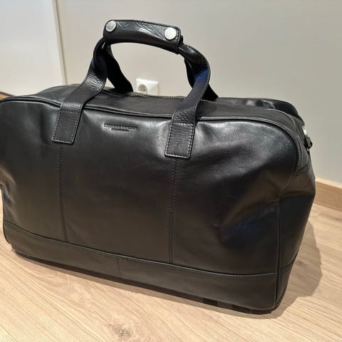 Kjempefin og romslig bag. Pent brukt. Litt merker på ene siden, som sikkert kan pusset bort med lærbalsam