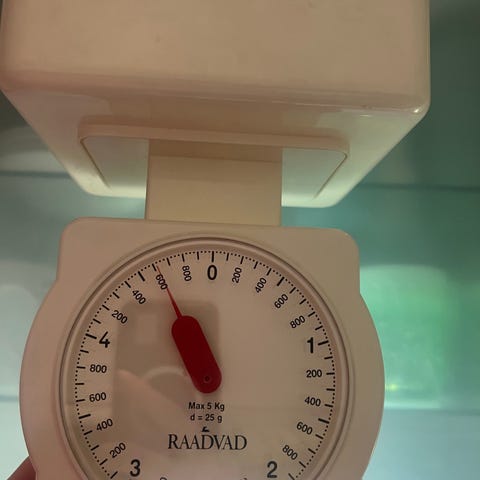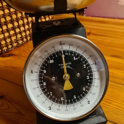 Eva retro analog kjøkkenvekt 5 kg. Høyde 15cm,bredde 14cm.