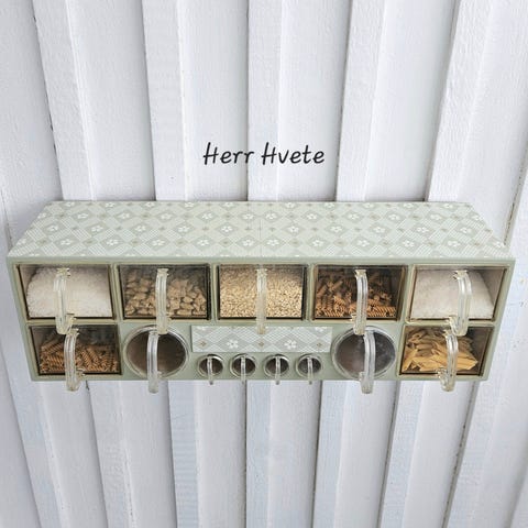 retro, vintage, krydderhylle, krydderholder, glass, vegghengt, midcentury, 50-tallet, 60-tallet, samlerobjekt, kjøkkeninteriør