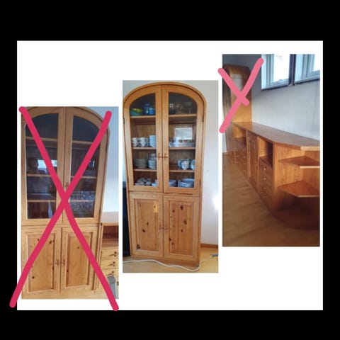 Vitrineskap i massivt tre, malt hvitt, selges på grunn av flytting.