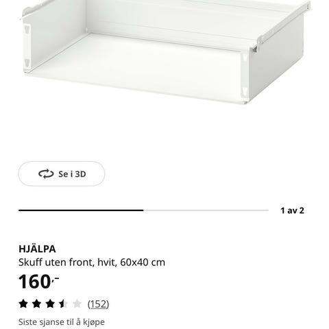Selger 2 stk hvite Komplement skuffer som passer til IKEA PAX-skap.