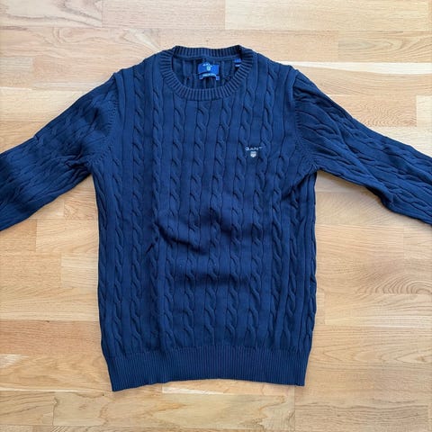 Redford genser for herre i størrelse M. Genseren er blå og laget av 100 % bomull. Den har rund hals og ribbestrikkede kanter i hals, ermer og nederkant. Fronten har et diskret brodert merke. Passer som hverdagsgenser eller til mer avslappede anledninger. Vask- og vedlikeholdsinformasjon står på innsydd merkelapp.