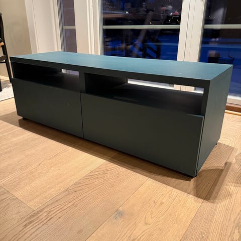 Pent IKEA bestå tv benk. Noen små bruks merker. Originalt brun/svart, men malt i en pen lys grønn farge.