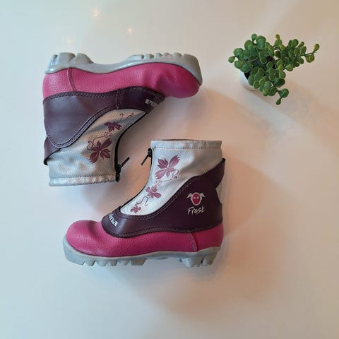 - Frost langrennsko i lilla med borrelås. - 100 kr, str. 30.