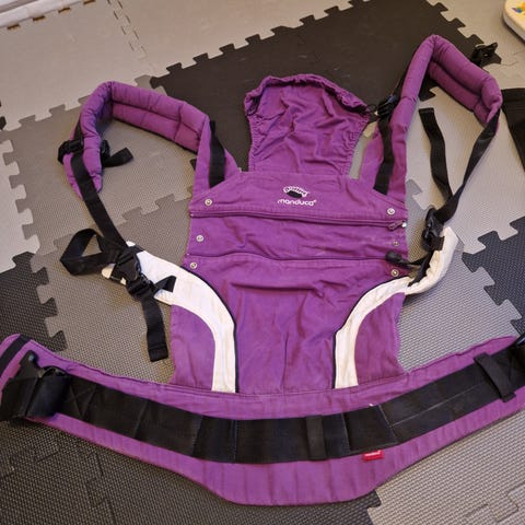 Manduca bæreselje i turkis og hvit farge. Bæreselen har polstrede skulderstropper og hoftebelte med justerbare spenner. Den har panel i stoff for støtte til barnets rygg og hode, samt ekstra stoffdel/innlegg i lys farge som kan brukes for bedre støtte. Egner seg til å bære barn tett inntil kroppen, med vekt fordelt mellom skuldre og hofter. Laget i mykt tekstilmateriale med brede stropper for komfort ved bruk over lengre tid.