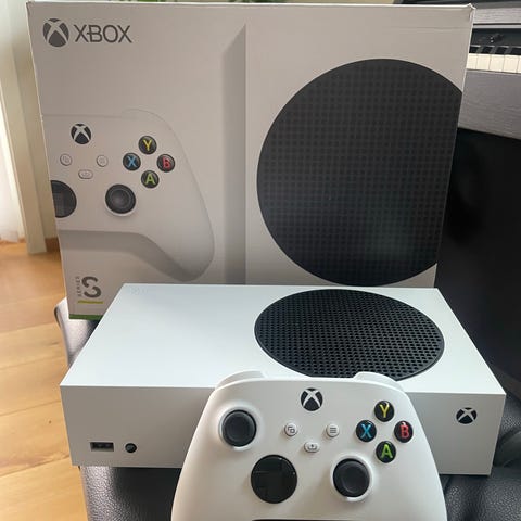 Microsoft Xbox Series S 512GB spillkonsoll. Følger med 2 kontrollere, kvit(noe slitt) og blå (god stand).