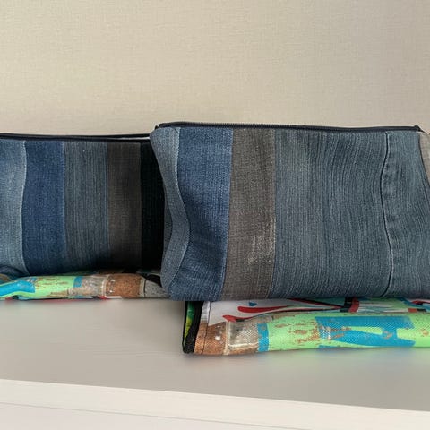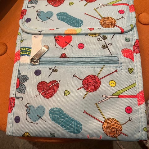 Veske til rundpinner ! Grønn utpå med farget stoff inni :-)