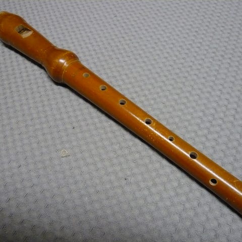 Ukjent merke trefløyte i brun utførelse. Fløyten er laget i tre med et metallstykke nederst. Den har munnstykke i toppen og flere fingerhull langs kroppen. Egner seg som blåseinstrument til øving, musikkbruk eller som dekorativt instrument.