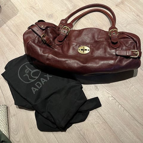 Selger en romslig Adax weekend bag i mykt sort skinn. Den har flere lommer på innsiden, og skulderreima er avtagbar. Den er brukt svært lite. Anslår at den rommer omtrent 50 liter. Er av veldig god kvalitet, og ikke minst er den superfin!