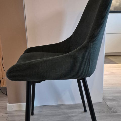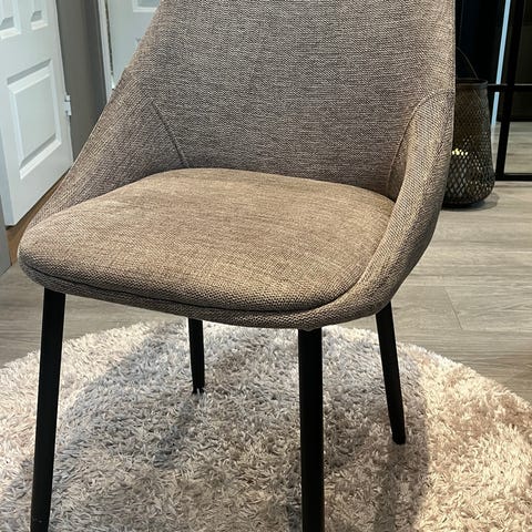 Ekstra komfortabel å sitte i med sin høye rygg og armlener. Stoffet er slitesterkt og holdbart. Veldig pen å ha rundt spisebordet, men også som en enkeltstående stol i gangen eller soverommet.