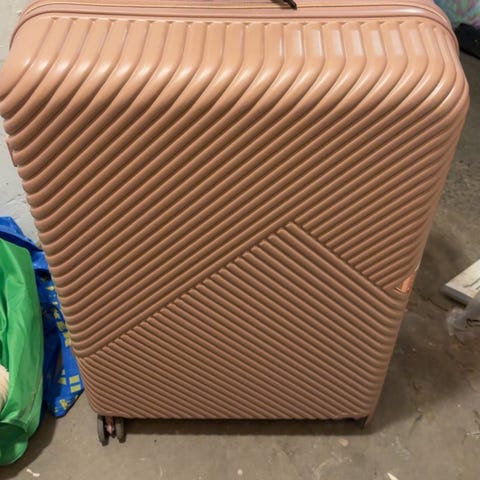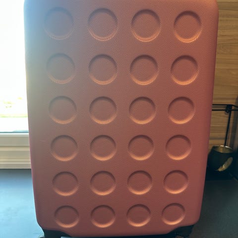 A-to-B koffert i hard plast for unisex. Kofferten har fire hjul, teleskophåndtak og bærehåndtak på toppen og siden. Den har integrert lås ved glidelåsen. Innvendig er det fôret hovedrom med stropp for å holde innholdet på plass, samt separate lommer i lokket med glidelås for mindre gjenstander. Fargen er rosa/nude.