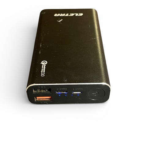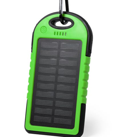 Powerbank med flere praktiske funksjoner. Solcelleladeren har integrert kompass på baksiden og to lommelykter på den ene siden, noe som gjør den perfekt for utendørs bruk, for eksempel når du skal på camping. Den er også motstandsdyktig mot smuss og vann.