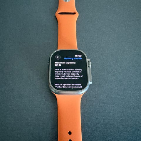 Selger en Apple Watch Ultra 2 i sort titanium som fremstår som svært pent brukt. Klokken er lite brukt og i meget god stand. Batterihelsen er fortsatt på sterke 98 %, noe som viser at den har vært brukt forsiktig.