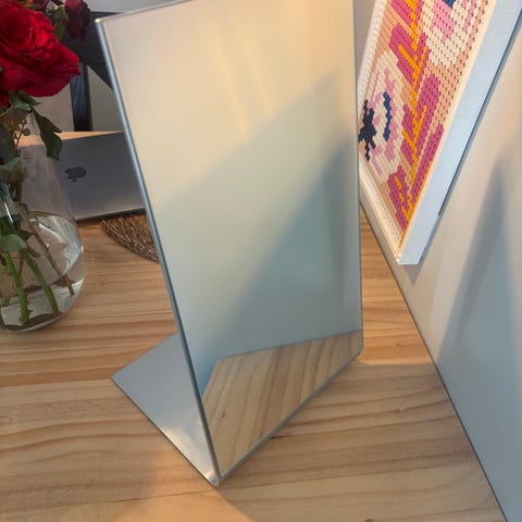 Speilet har et minimalistisk, rammeløst design som passer perfekt på sminkebordet, i gangen eller som en dekorativ detalj i hyllen.