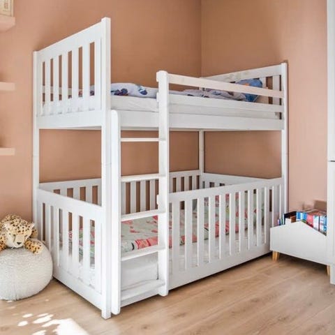 Komplett hvit køyeseng med integrert stige