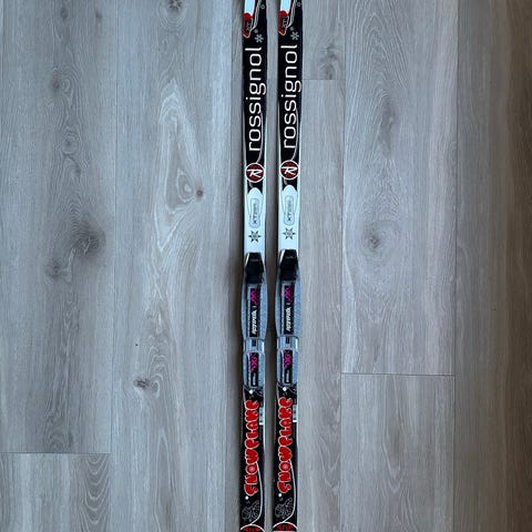Rossignol langrennski med Rottefella-binding. Skiene har klassisk profil og er utstyrt med Rottefella NNN-binding som passer til sko med tilsvarende sålesystem. Godt brukt, men fungerer som de skal.