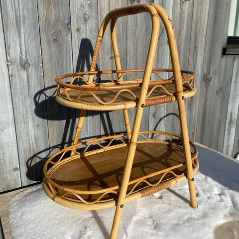Stilig pidestall i bambus med glasstopp. Stabil og fungerer som den skal. Ingen feil eller mangler. Selges da vi har små barn og har derfor blitt kvitt de fleste gulvplanter.