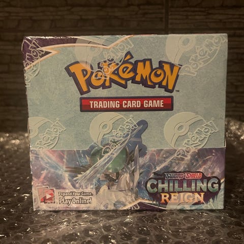 Selger en sealed Brilliant Stars boosterbox. Tilstanden vises på bildene, ene hjørnet har en liten bulk i pappen. Pris: 6500kr.