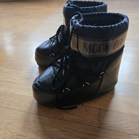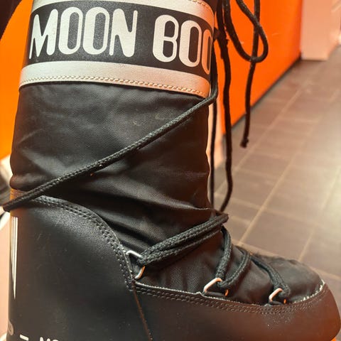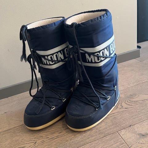 Blå Moon Boot str. 39-41. Kun brukt noen få ganger på hytta. Ett par riper i front (se bilder), ellers pent brukt.