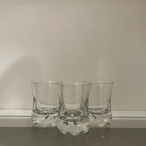 Iittala glass med farget stett. Glassene har ulike farger på stetten, blant annet grønn, gull og andre nyanser. Egner seg til servering av for eksempel vin, likør eller annen drikke. Passer til bruk i kjøkken og spisestue, og kan brukes både til hverdag og ved spesielle anledninger.