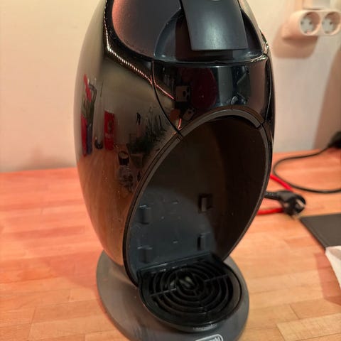 Dolce Gusto kapselmaskin selges da vi har kjøpt ny. Vi kjøpte denne i november 2025, så den er så og si helt ny :) vi har fortsatt noen kaffekapsler igjen (vanlig svart kaffe og espresso) som følger med