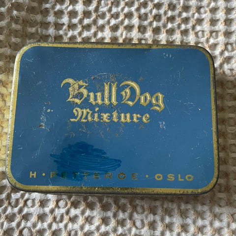 John Bull Repair Outfit metallboks. Liten boks i metall med hengslet lokk. Forsiden har trykket logo og tekst «John Bull Repair Outfit». Innsiden er tom. Boksen kan brukes som samlerobjekt, dekorasjon eller til oppbevaring av små gjenstander som skruer, nåler eller andre småting. Gi bud!