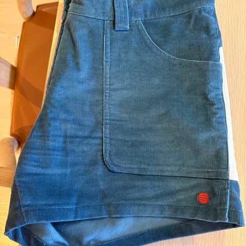 Amundsen shorts for dame i størrelse S. Shortsen er i blå cordfløyel og har klassisk 5-lommers design med knapp og glidelås i front. Belteløkker i linningen gjør det mulig å bruke belte. Egnet til hverdagsbruk og fritidsaktiviteter i varmt vær.