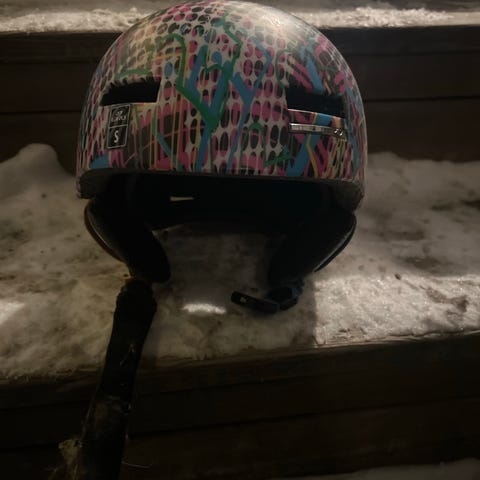 Festet til brillene bak på hjelmen er ødelagt, se bilde.