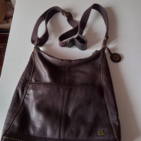 Fin sage grønn håndveske i nylon og skinn. Jeg har noen vesker igjen fra da vi drev nettbutikk som jeg selger her med 75%-85% avslag i prisen. Veskene kommer med merkelapper på og er aldri blitt brukt. Bedre at noen får bruke dem enn at de ligger på lager hos meg. Mange av der kjenner kanskje The Sak merket fra før da vi importerte dette merket og solgte det til butikker i hele Scandinavia. De er kjent for sin gode kvalitet. Vi måtte slutte med import da dollaren ble så dyr at vi ikke klarte å tjene penger på det lenger. Det er kjempegod kvalitet på skinn og hekle veskene til The Sak. Veskene i stoff kan vaskes og ser like fine ut etterpå.