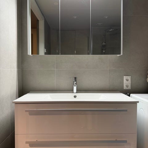 Baderomsinnredning 120 x 66 x 50. To store dype skuffer. Armatur fra hansgrohe følger også med.