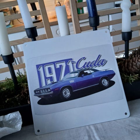 Plymouth Barracuda 1970 metalskilt retro repro selges