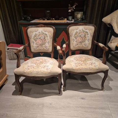 Rokokkostol brodert . Selges kr 1000 per stykk.