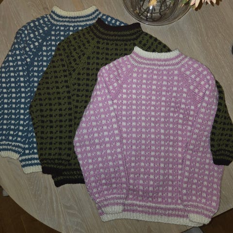 Alle genserne er strikket i Gjestal Cortina Soft som er 100% ren, ny ull
