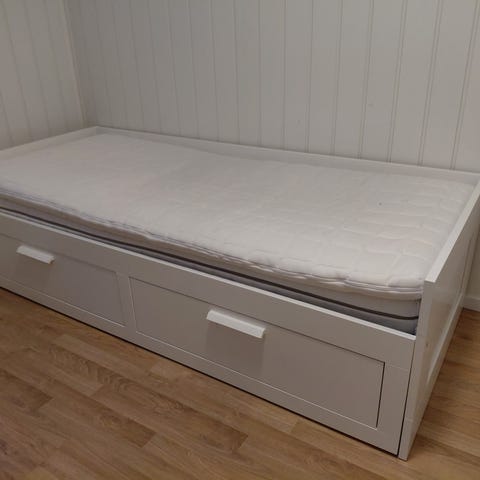 Inkludert to gode madrasser hvor det er avtagbare trekk for vask.Tre store skuffer og sengen kan trekkes ut til dobbelseng.