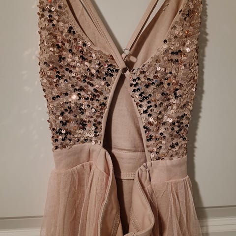 brukt kjole bare en gang, perfekt til ulike arrangementer, den er i beige/lyserosa fargen