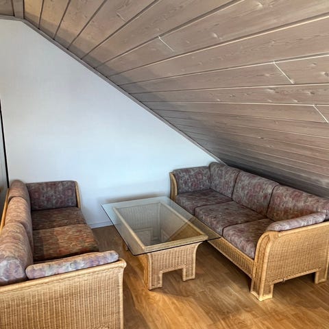 Drømmer du om en sittebenk? Vi må dessverre selge vår nydelige sittebenk i bjørk da vi skal pusse opp. Sitteputene er sydd i 100% ull.