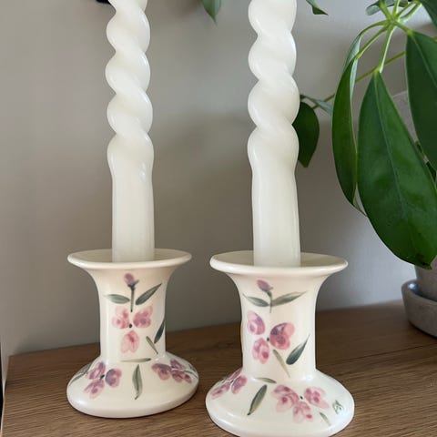 Selger en vintage kammerstake i porselen med nydelige detaljer av blomst og gull. H5,5cm.