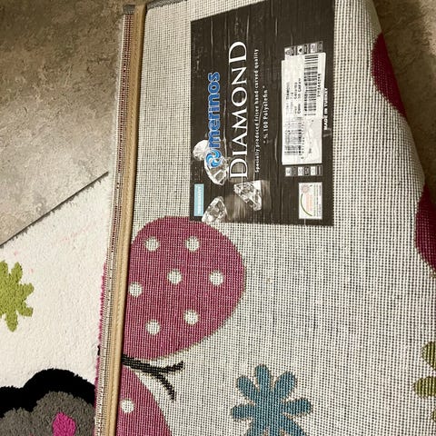 Det er en skade på baksiden men denne synes ikke fra forsiden når teppet ligger på gulvet. Selges derfor billig.