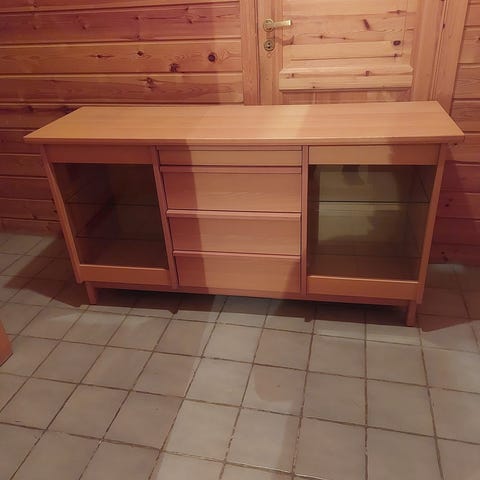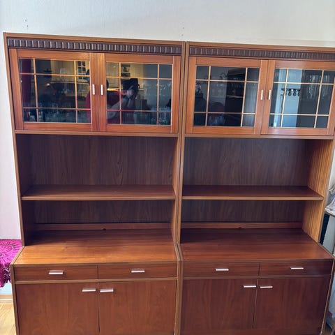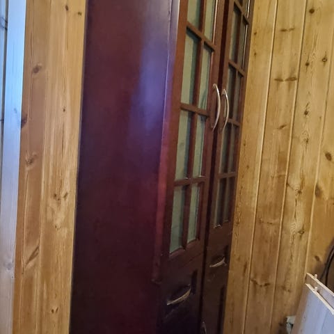 noen bruksmerker. Kjøper må hente Vitrineskap i Trondheim . Skapet står I 2 etg. Gis bort gratis mot henting.