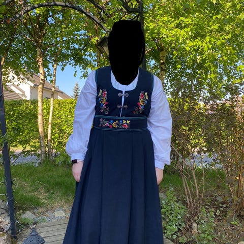 Kjøpte den i fjord og brukt 1 gang på 17 mai. Fest drakten er str 38-40 og skjorta følger også med som er i str 34-36, men passer meg som bruker M-L til vanlig. Kan sendes mot betaling av frakt.