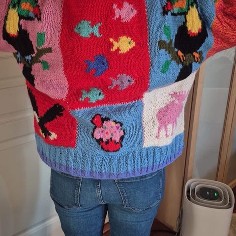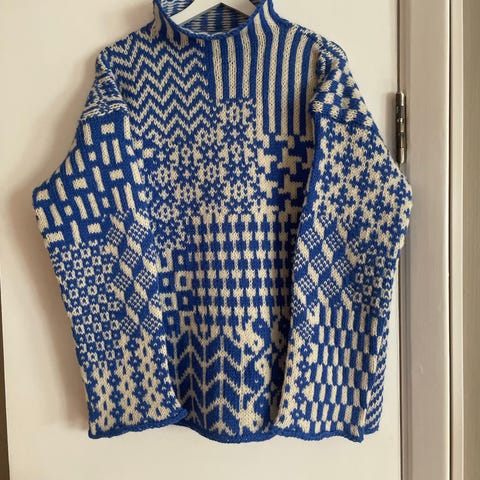 Genser strikket i Fivel. Str M/L, selges til hbo 1500,-