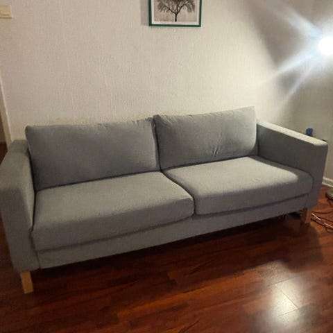 Enkel grå sofa kjøpt på Bohus for noen år tilbake, men lite brukt