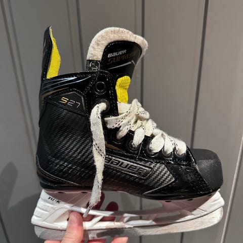 Bauer NS ishockeyskøyter for barn i størrelse Y10 (18 cm innersåle) Skøytene har svart og rød yttersko med hvite lisser og hvit holder. Blad i stål tilpasset ishockeybruk. Modellen er konstruert for barn, med polstret innside og støtte rundt ankel for økt stabilitet på isen. Passer til bruk på ishockeybane og annen isflate der ishockeyskøyter er egnet.