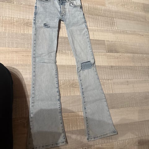 Blå bukse fra bik bok str xs lengde 31. low flare