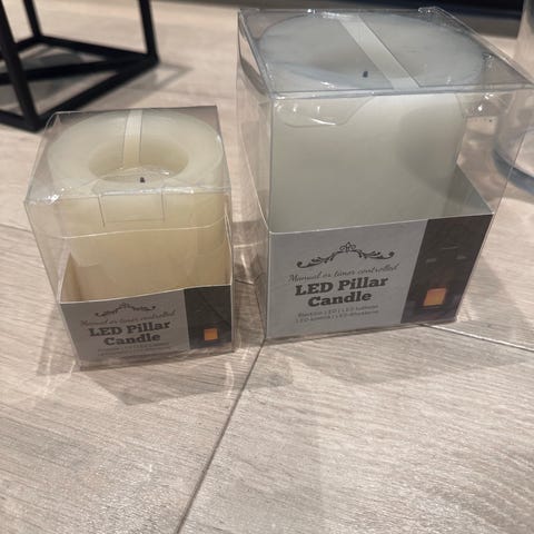 Pakning med 3 LED-kubbelys i voks, ø 7,5 x 10/12/15 cm. Meget dekorative med naturtro flamme. Enkel og praktisk fjernkontroll med av/på- og timerfunksjon (6t på/18t av) er inkludert i pakken. Bruker 2 x AA-batterier pr. lys (selges separat), batteriet til fjernkontroll (CR2025) selges separat.