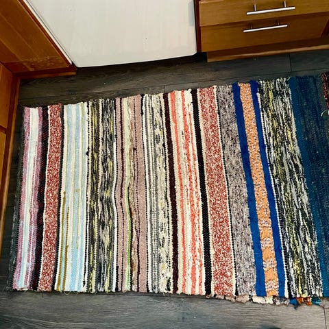 Håndlaget vevd løper / billedvev med fargerikt motiv.