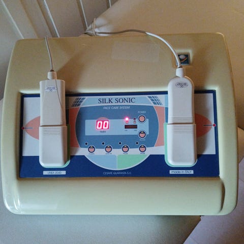 Ultralyd og RF multifunksjonell hudpleiemaskin med vakuumfunksjon. Enheten har berøringsskjerm for valg og justering av programmer og innstillinger. Skjermen viser blant annet moduser som 40K ultralyd, multi-polar RF og vakuum bipolar. Maskinen er egnet til profesjonell bruk i klinikk eller salongmiljø for ulike typer hud- og kroppsbehandlinger der det kreves ultralyd, radiofrekvens og vakuum i samme apparat.