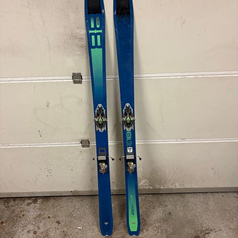 Dynastar Vertical 88 Basalt toppturski i lengde 180 cm. Skiene har hybridkjerne med basalt-lag og er merket med mål 120-88-110 mm og radius 22 m. Undersiden er rød med Dynastar-logo. Skiene er utstyrt med lette tech/toppturbindinger (ikke kompatible med ISO 9462 alpin-sålestandard ifølge merking). Egner seg til topptur og randonee-kjøring. Skiene er veldig lette med Dynafit superlite 2.0 bindinger. Disse er satt opp med 28,5 - 330 mm. Bindingen kan justeres litt, både frem og tilbake. Feller er orginale Dynastar som passer til skien. Ny pris for oppsettet er rundt 12k. Både feller og ski er i god stand. Sender ikke, men kan hentes på Beitostølen ev Sogndal.